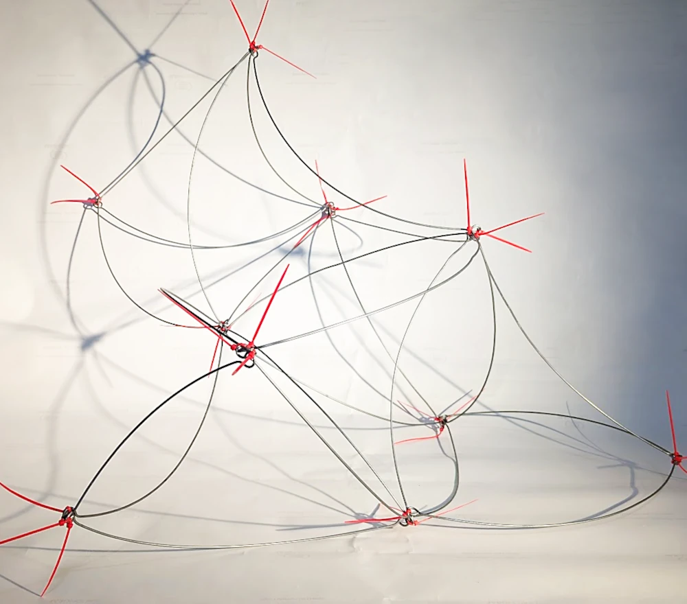 Reticulárea colectiva es organizada por LA ESCUELA___, una plataforma para el aprendizaje y la creación colectiva en el espacio público fundada por Miguel Braceli junto a la fundación internacional Siemens Stiftung. Este proyecto se desarrolla bajo la curaduría de la Fundación Gego y de la curadora y profesora austriaca Stefanie Reisinger. Concebido en el marco de los programas formativos de LA ESCUELA___, busca generar nuevos diálogos y narrativas sobre los vínculos regionales, al tiempo que explora el potencial de las prácticas colaborativas de creación y aprendizaje, abordando temas de diásporas y migración desde  vínculos afectivos sobre arte y territorio. “El resultado visible no es nunca la pieza completa, ya que hay que tener en cuenta el proceso de su génesis”, apunta Reisinger. En desarrollo desde diciembre de 2023, a través de una convocatoria abierta a artistas, educadores y personas vinculadas a la obra de Gego, Reticulárea colectiva está constituida por módulos-piezas de diversas materialidades, enviadas desde países como Perú, Colombia, Argentina, México, Estados Unidos, República Dominicana, Francia, Reino Unido, Alemania y España; fragmentos que se suman a las espacialidades construidas por estudiantes del Taller X de la Facultad de Arquitectura y Urbanismo de la UCV (a cargo del profesor Diego González), de la Escuela de Artes Visuales de la ULA (a cargo de la profesora Analy Trejo), y de la Escuela de Artes, Mención Diseño de la UNIMAR (junto a los profesores Gustavo Izarra y Amanda Soriano). En esta suma, pensada desde lo colaborativo y lo formativo, los participantes construyeron módulos–piezas desde las posibilidades y limitaciones de sus contextos. De esta manera, el proyecto dialoga con la Reticulárea –la obra más reconocida y emblemática de Gego– no desde una intención mimética sino “desde un lugar simbólico, como una cartografía comunitaria de formas expansivas”, comenta Braceli, “abordando el nodo como un objeto de