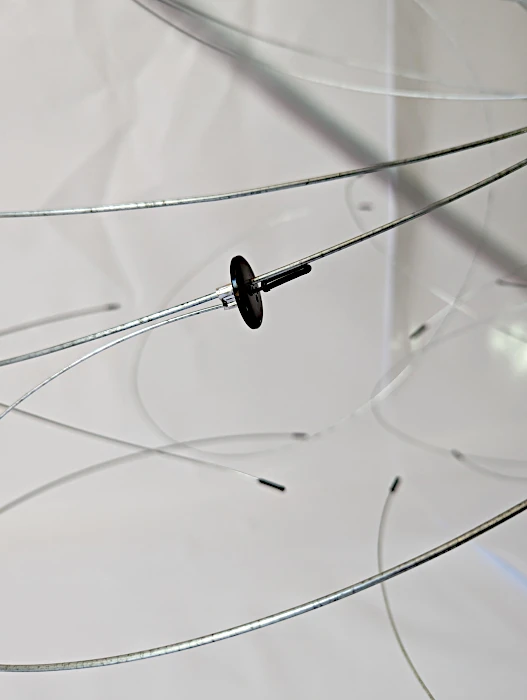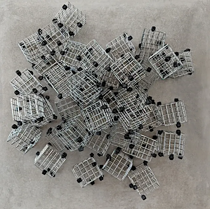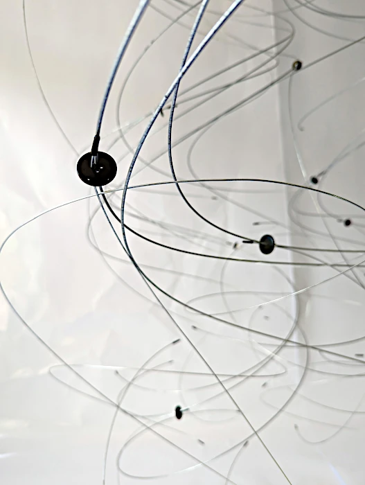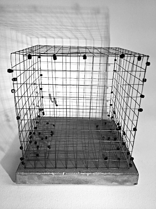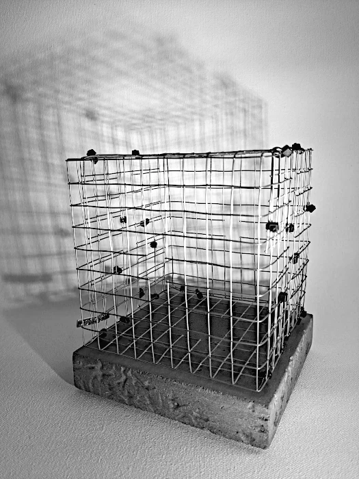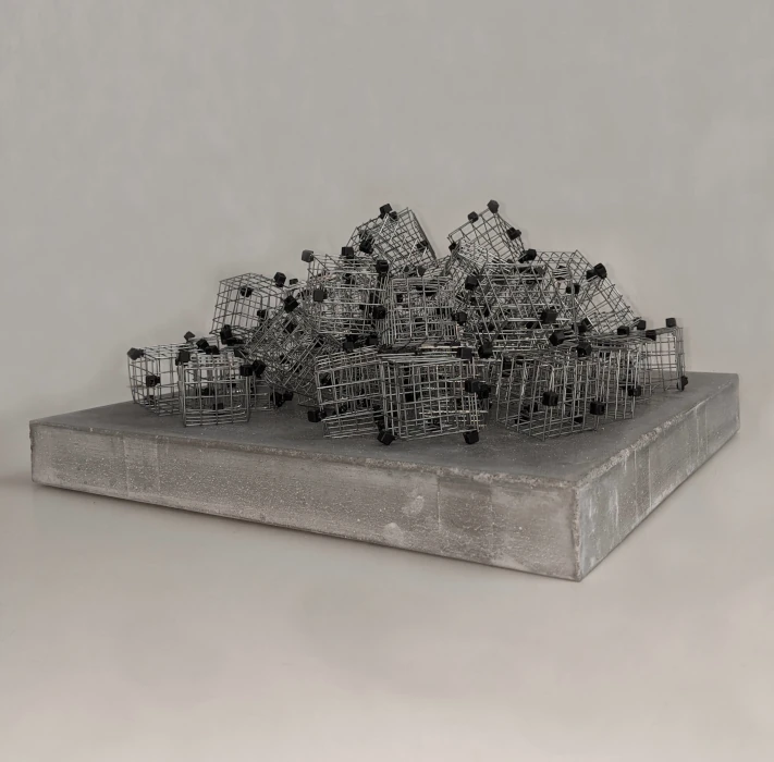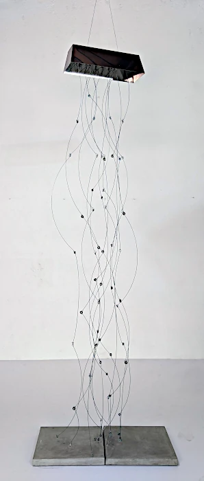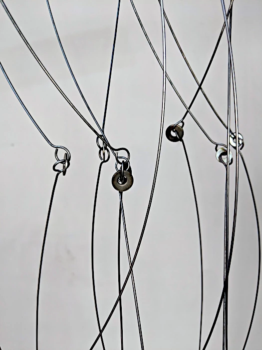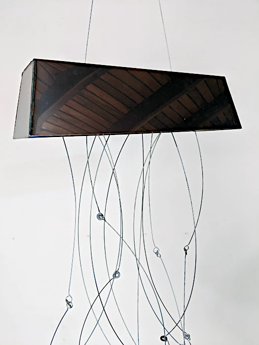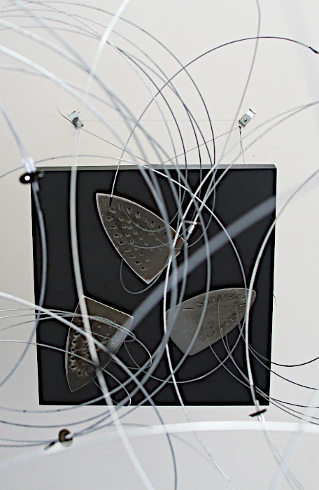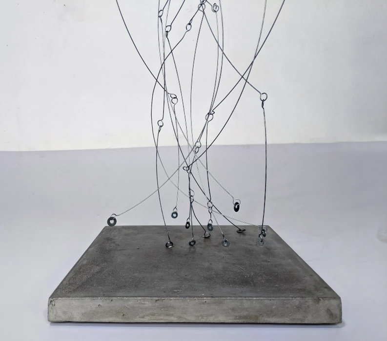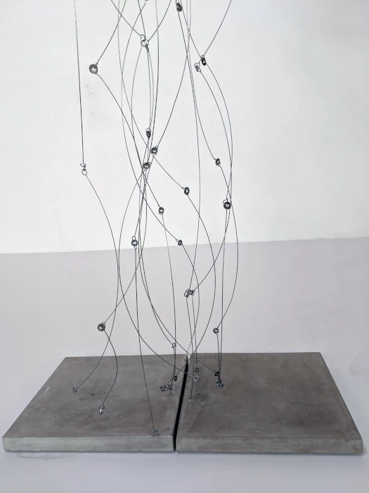 Desde las más arduas y pesadas labores a las más delicadas artes de costura, nuestro genero está cargado de expectativas sobre nuestro papel en la cotidianidad del hogar, pero como mujeres, sabemos que somos capaces de eso y mucho más. El reto es creérnoslo; superar nuestros miedos y activarnos. Sin embargo, si somos afortunadas de romper ese cascarón, comenzará una nueva lucha por el equilibrio. A primera vista, no vemos nada claro, pero al acercarnos desciframos la confusión de líneas que caen y se entrecruzan. El peso de las planchas, la belleza de los botones, la sensualidad de las curvas, las ligereza y gracia de las líneas, el fluir del metal que cae en curvas por su propio peso y el toque final: la sombra que representa esta dualidad permanente que vive la mujer entre lo que se espera de ella y lo que es capaz de hacer. Así somos las mujeres… no nos ven venir, pero cuando llegamos es con fuerza y determinación. La obra es un homenaje a la mujer: desde la belleza y el coraje de las labores del hogar, a la lucha y el logro de ser mucho más que eso, a pesar de una sociedad que nos oprime. El resultado es una tormenta con fuerza, astucia, gracia y sensualidad.